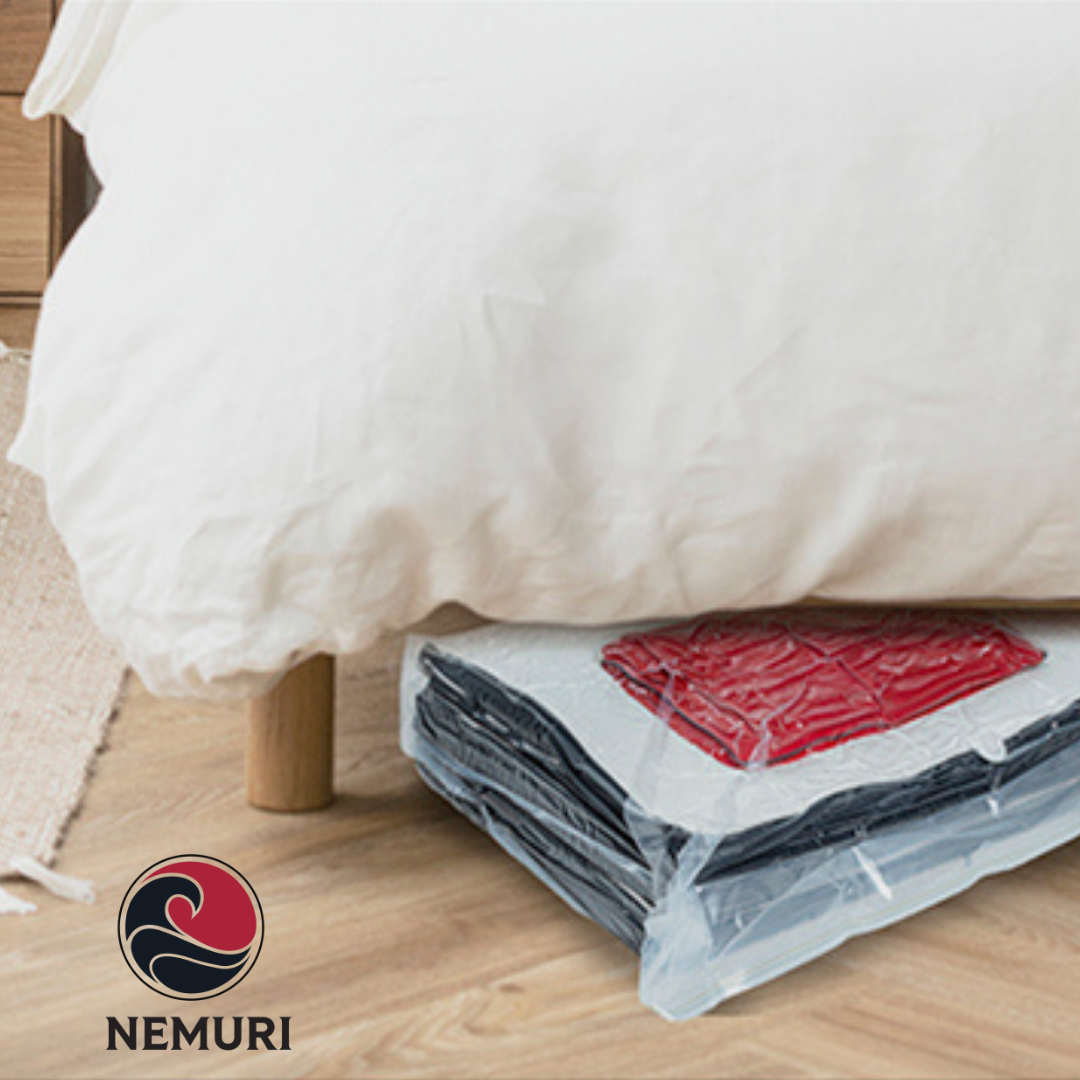 Die Nemuri Vakuumtasche ist die ideale Lösung, um deine Matratze hygienisch, platzsparend und sicher zu lagern. Mit einer Größe von 120x140cm ist sie perfekt geeignet für Matratzen bis zu 100x200x15cm – ideal für Gästematratzen, Faltmatratzen oder Campingbetten.